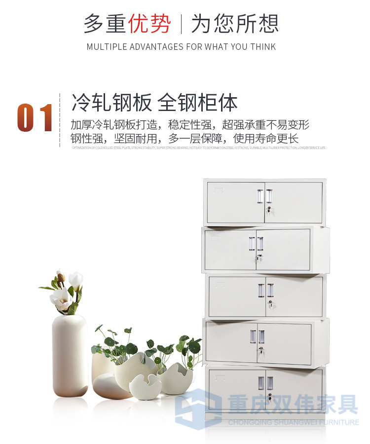 下節(jié)并列2抽屜+1全寬抽屜(雙壁前面板,配PVC內(nèi)嵌扣手/轉(zhuǎn)舌鎖,抽屜側(cè)板配尼龍腳輪)+對開門(配PVC內(nèi)嵌扣手/轉(zhuǎn)舌鎖/號插,門背焊接全長加強筋);